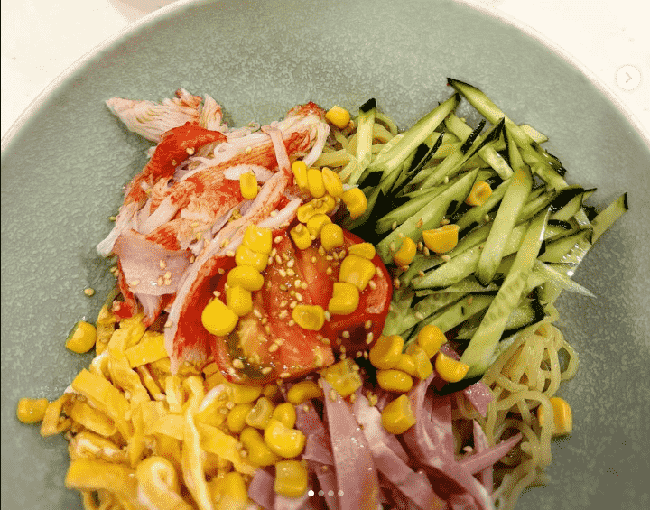 投稿されたのは、自宅で手作りした冷やし中華の写真。きゅうり、卵、ハム、カニカマ、トマト、コーンなど彩り豊かな具材がたっぷりとのり、ゴマだれを添えつつ、今回は酢醤油バージョンでいただいたという。「冷やし中華が美味しい季節になりましたね」と綴るコメントからも、暑さを和らげる夏の定番メニューを楽しんでいる様子が伝わってくる。涼を感じさせる一皿に、多くのフォロワーも共感したことだろう。