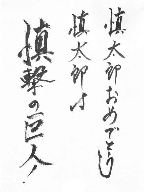 "慎太郎は慎撃の巨人"松岡修造、達筆ショットで「全米オープン本戦初出場!初勝利!」の望月慎太郎を祝福!