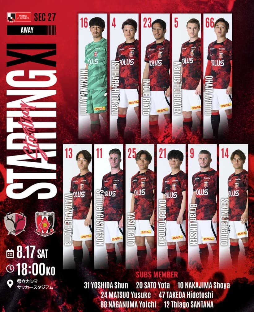 "西川不在の浦和"、絶対に負けられない鹿島戦のスターティングメンバー発表