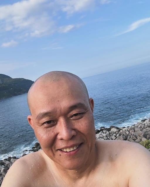 "僧侶芸人”が海辺での写真を公開「海坊主ですやん」