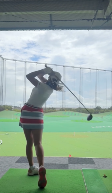 "超絶美脚"ミニスカウエアに注目!美女ティーチングプロ・遠藤璃乃、ドライバースイングムービーにファンの視線釘付け!