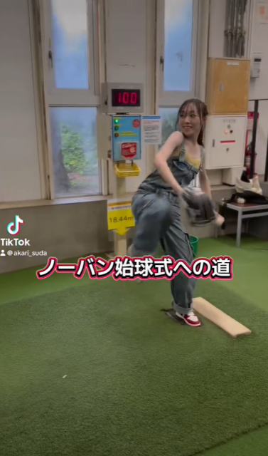 "ノーバン始球式への道"須田亜香里、色白美肌あらわな始球式練習動画でかわいすぎるサウスポー披露!
