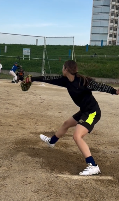 "実力派"野球女子インフルエンサー、左腕うなる"キレッキレカーブ"ムービー公開に「ナイスボール!」