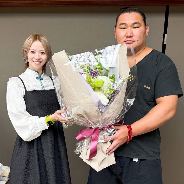 "相撲大好きアナ"宮島咲良、「豊昇龍関の26歳のお誕生日」で花束贈呈ショット公開!