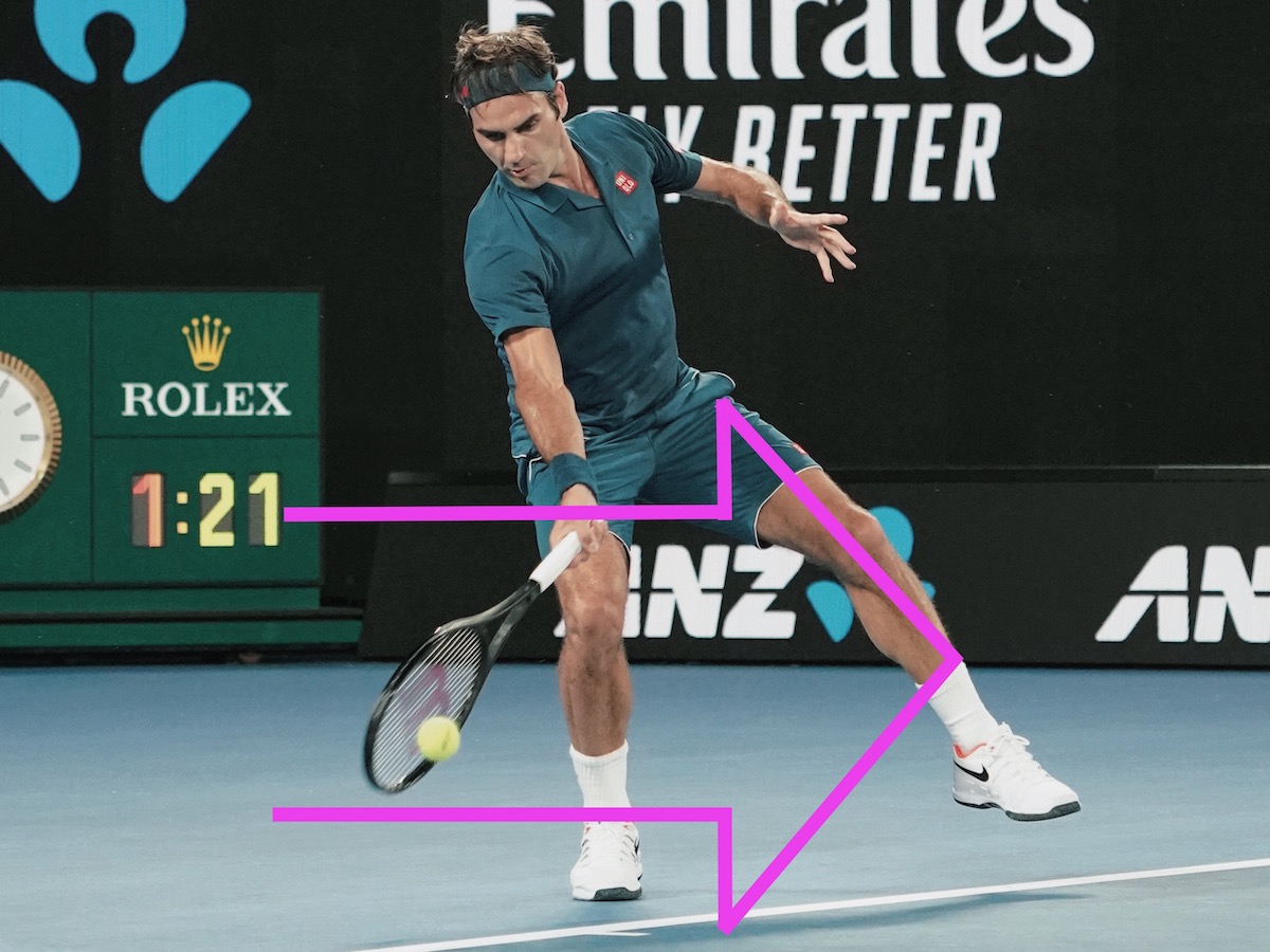 下から上がってくるものに対して、上方向へスイングするとミスをしやすくなる (写真:R.フェデラー[スイス])