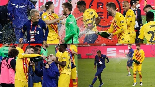 ひとたび“ショー”が始まると、ピケは明日がないかのようにCAVA(カバ)を飲み始め、目の前にいたチームメイト、スタッフ、記者、オペレーターなどすべての人にカバを浴びせた。カバの「王様」は、ラ・カルトゥーハのピッチ上でボトルを空にして満足したわけではなく、ホテルに到着すると、テンションの高い選手たちと共に、バスの到着を待つ報道関係者の全員を濡らすために自らその責任を引き受けた。セビージャのNH Collection(ホテル)への記憶に残る到着の際には、ピケがセレモニーの中心となっていた。