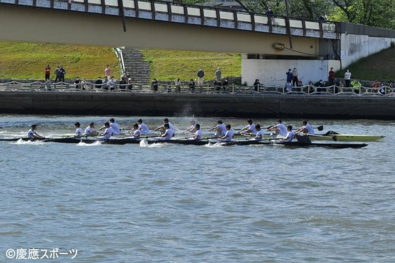 勝負が決まったのはゴール直前。ラストの漕ぎで慶大が大きく前進し、混戦を抜け出すと、そのまま船首がゴールラインを通過した。レースは、どちらが勝ってもおかしくない大接戦であった。