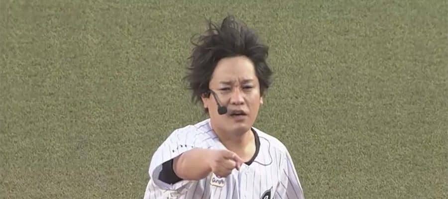 ぺこぱは試合前にコンビでグラウンドに姿を見せると松陰寺さんがマウンドに上がり、シュウペイさんが球審を務めた。渾身の一球を打席に入った山口はハーフスイング。これに球審・シュウペイはボールを宣告したが、納得できない松陰寺は「ちょっと、時を戻そう」とお決まりの台詞でリクエストを要求した。