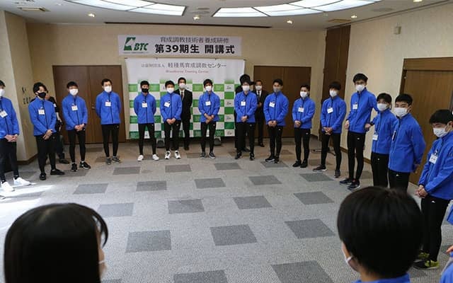 開講式の式典終了後、部屋全体を使って大きな輪を作っての自己紹介が行われた。25名がそれぞれ一人ずつ簡単に自分のことを皆に紹介していくのである。25名もいると、出身地から経歴から実に様々だ。高校まで野球部で汗を流していた男子、柔道を9年間続けてきた男子、農業高校で畜産を学んできた子もいれば、家族に連れられて行った競馬場で厩務員が馬を引く姿に魅せられ馬の世界を目指すことになった子もいる。将来は厩務員から調教師になりたいという男子もいた。