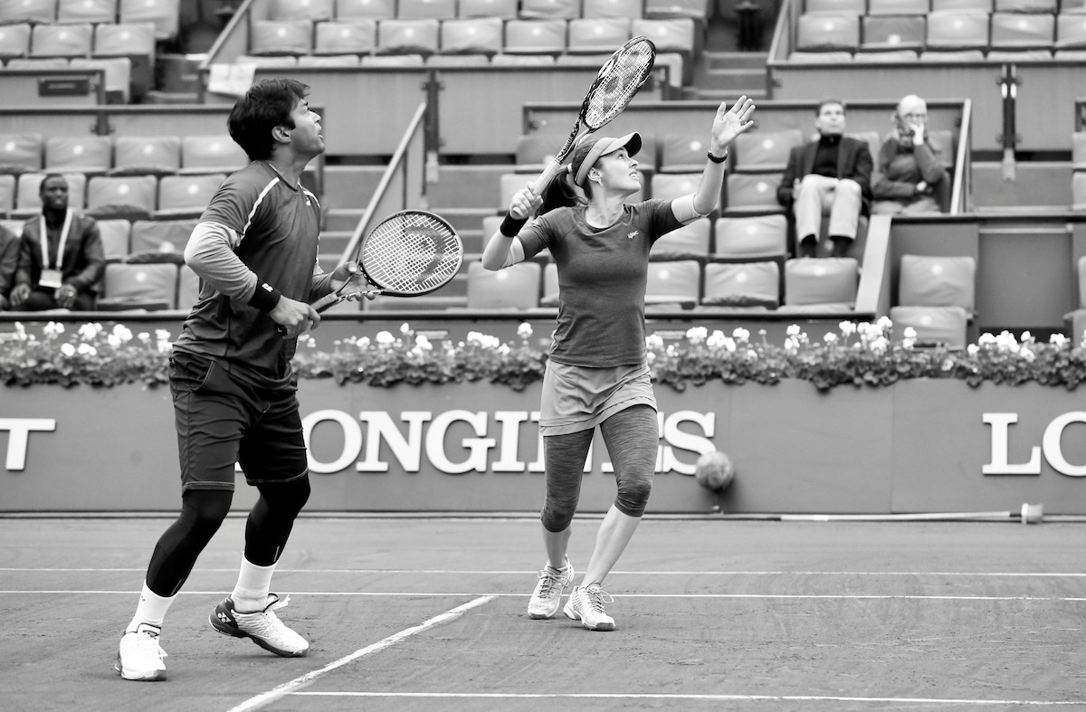 2016年全仏のミックスダブルスを制したマルチナ・ヒンギス(スイス)とパエス