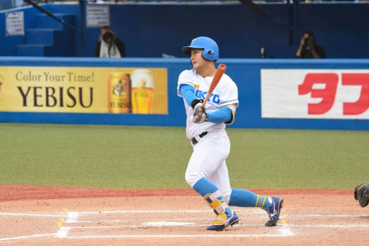 10日に幕を開けた東京六大学春季リーグ戦。早大との開幕戦、あっと驚かせたのは背番号1だった。大阪桐蔭高時代にセンバツ優勝、今秋ドラフト候補に挙がる右腕・徳山壮磨(4年)からのタイムリー二塁打を含め3安打。5-6と昨秋王者をあと一歩まで追いつめる接戦を演出した。