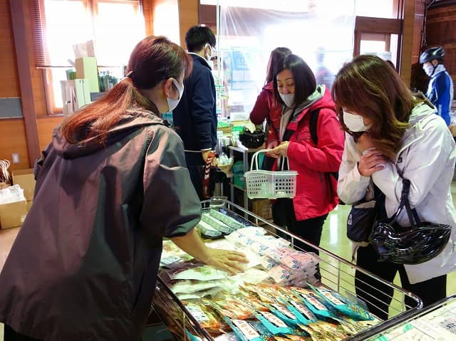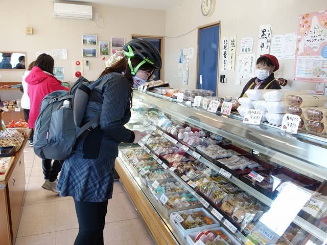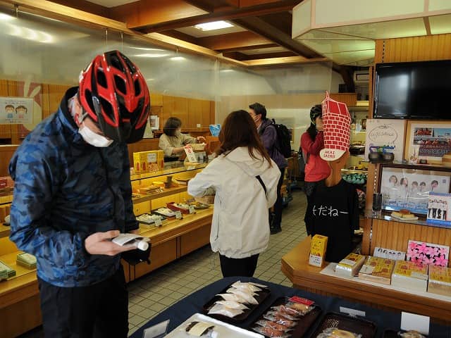 生ケーキもあり、目移りしながら、それぞれ、気になる商品をゲット。この日は補給を携帯しないとエネルギー切れになる可能性がないグルメライドだったが、さっそく頬張ったり、ポケットに忍ばせたりして、店を後にした。