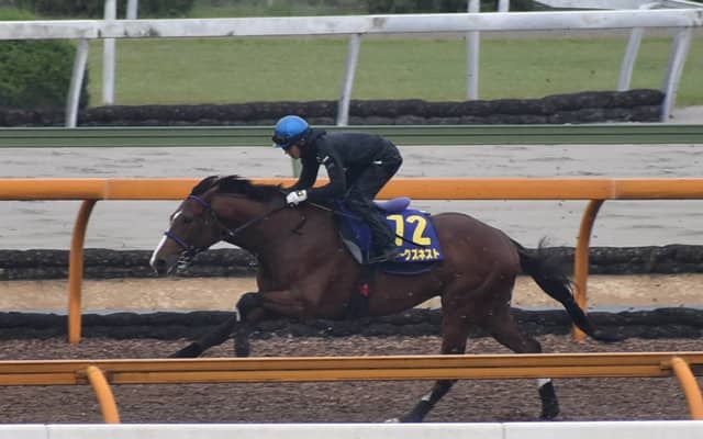 CWコース、1回目のハローが終了した時間帯に幸英明騎手を背に入場。1コーナーから2コーナーを回り、向正面に入ったところではゆったりとした走りだったが、3コーナー手前からラップが速くなると、前方を走っていた他厩舎の併せ馬に追いつきそうな勢い。