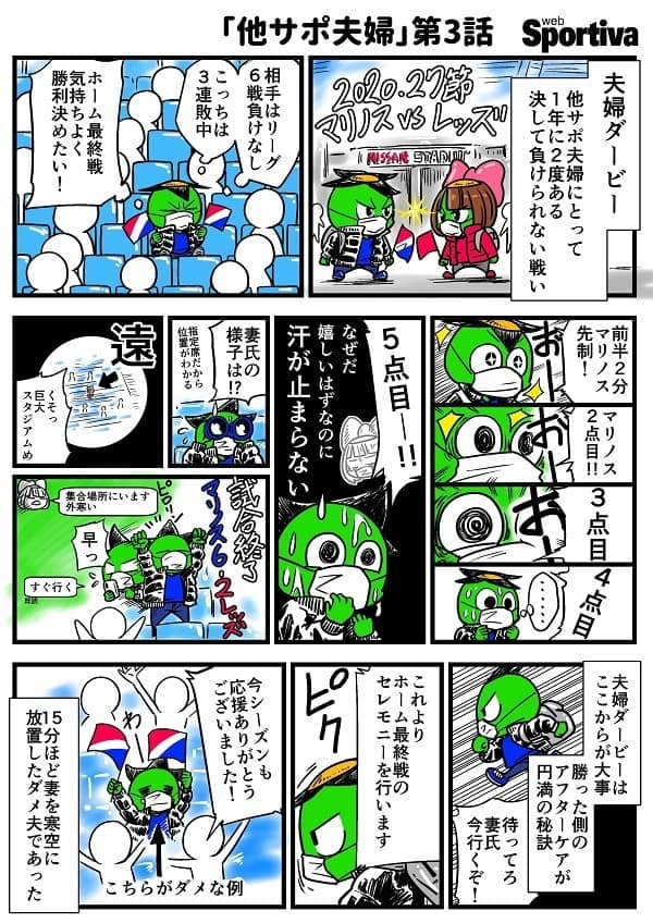 千田純生先生(@chidajunsei3163 )の新連載『他サポ夫婦』第3話です。