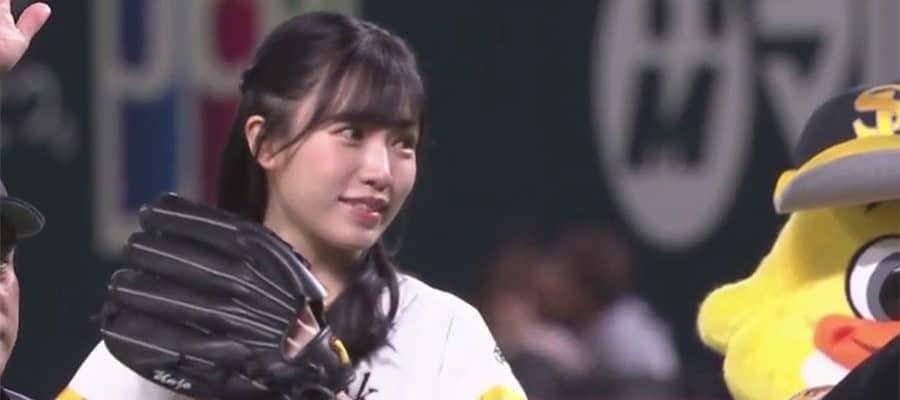 PayPayドームで29日に行われたソフトバンク-日本ハム戦で、福岡を拠点に活動するアイドルグループ「HKT48」のメンバーで、北海道出身の運上弘菜さんが始球式を務めた。背番号48のユニホームに、ショートパンツ姿で登板した22歳の健康的な姿に「足めっちゃ綺麗」「可愛いな」などと声が上がっている。