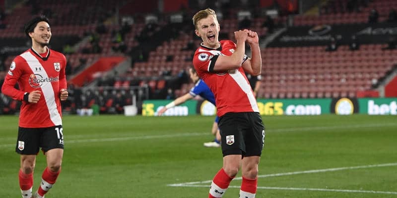 CKの流れからアームストロングの放ったシュートがボックス内のイヘアナチョの手に当たった。このPKをウォード=プラウズが決めて10人のサウサンプトンが先制した。