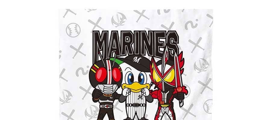 ロッテが販売開始する仮面ライダーコラボ「ハイブリッドハンドタオル」【写真:球団提供】