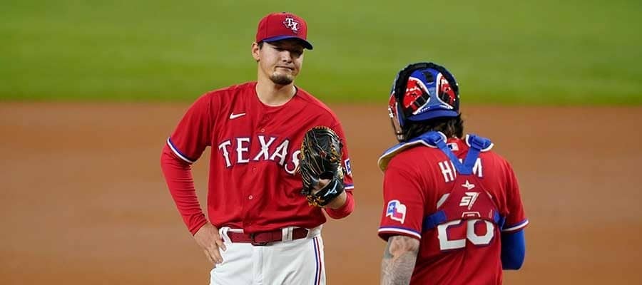 Rソックス戦に先発したレンジャーズ・有原航平(左)【写真:AP】