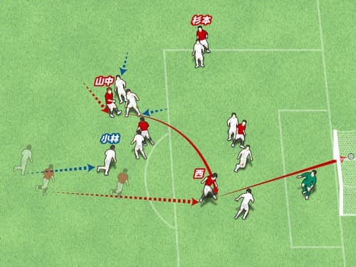 山中亮輔がボールを受けた瞬間、西大伍はどう動いたか?