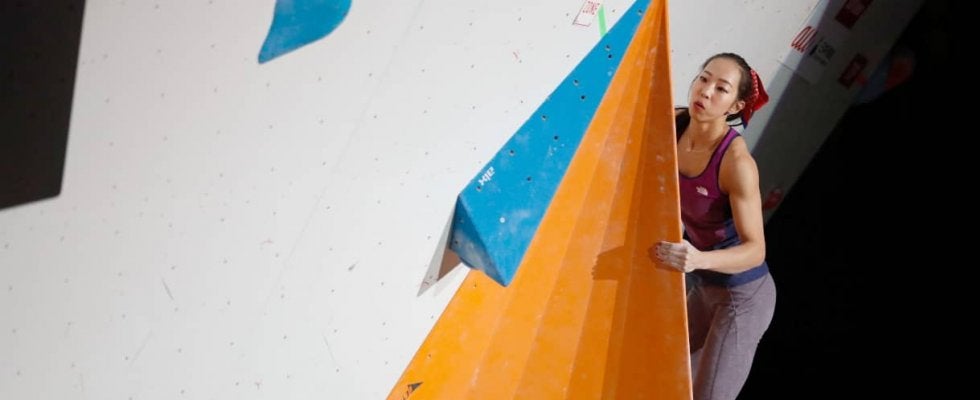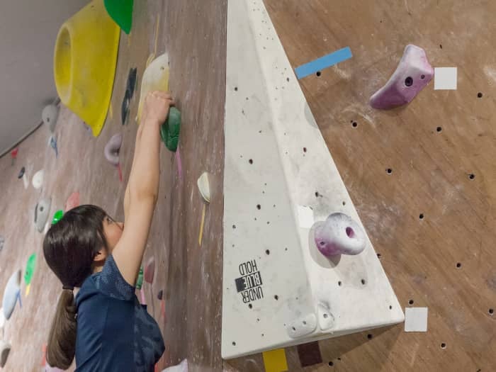 フリクションのないツルツル加工がクライマーを苦しめる(写真:鈴木奈保子)