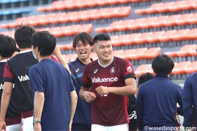 浦田 まさにその通りです。自分が強いな、と思うのは、各々が何をやりたいのかが本当に明確になっていることだと思っています。主務の羽田(拓矢、人4=東京・駒場)であればピッチへの関わりはもちろんですし、運営の面で彼は本当にスペシャリストだなと思います。西川(玄記、スポ4=石川・金沢桜丘)であれば早慶戦にかける熱量で彼を凌ぐ人間を見たことがないほどです。林(隆生、スポ4=東京・小石川)はチームの広報活動での部員ブログや学連の活動を通じて、大学サッカー・大学スポーツに課題感を持って行動をしているのが本当に素晴らしいです。高原(歩希、文構4=埼玉・早大本庄)もチームのことはもちろん、早慶戦に関しても、オールマイティに関わってくれています。人数が多いだけではなく、各々がスペシャルな特徴を持ったからこそ、学年にいい影響を与えられているのではないかと思います。