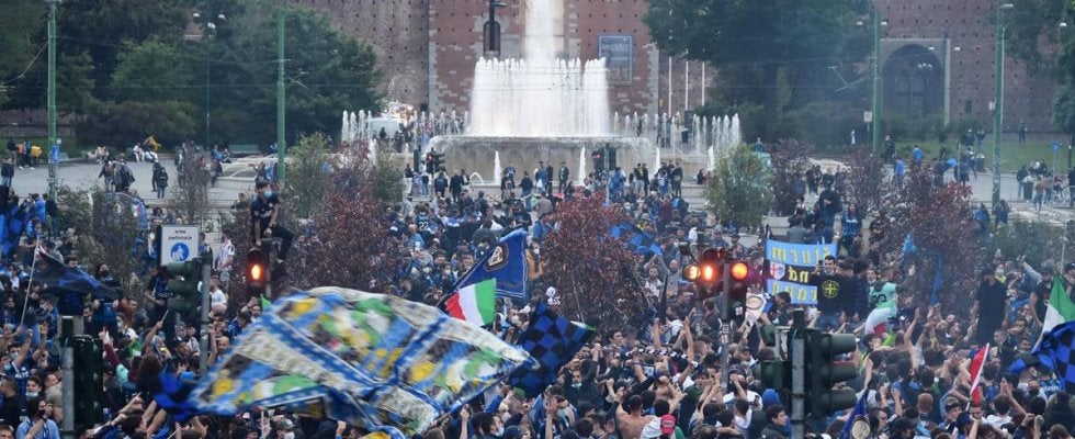 Esultano i tifosi dell'@Inter in Piazza Duomo. L’inviato @SimoneZazzera#IMScudetto #IMInter pic.twitter.com/0wN04kuCfo