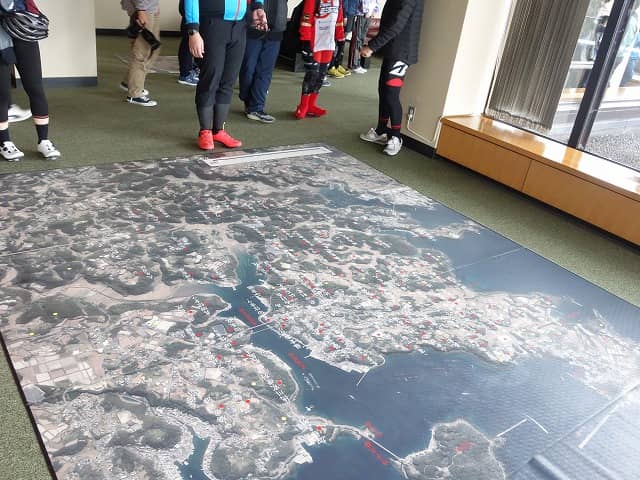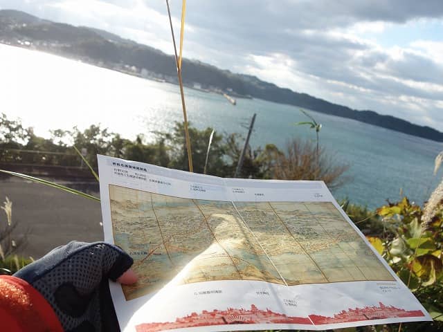 今回のモニターライドでは、佐賀県立名護屋城博物館を拠点とし、西の波戸岬側と東の呼子側に周回するメガネのような形の24kmほどのコースの走行を楽しむと同時に、いくつかの陣跡を実際に訪れ見学する。