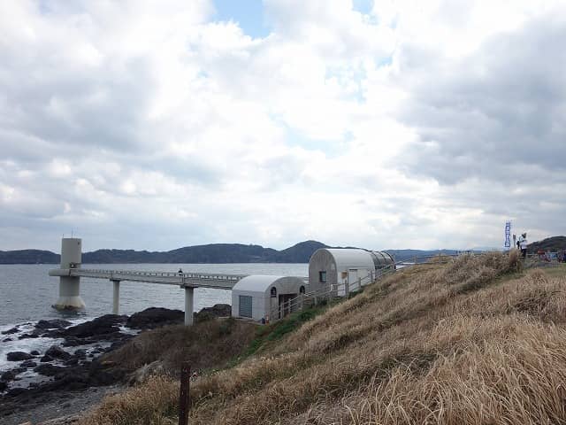 ほどなく、波戸岬に到着。海の見晴らしが良く、気持ちのいい高台だ。夏は海水浴やキャンプでにぎわうという。海中に突き出した、白い海中展望台からは熱帯性の魚や、珍しい海藻類が眺められ、人気が高いそうだ。
