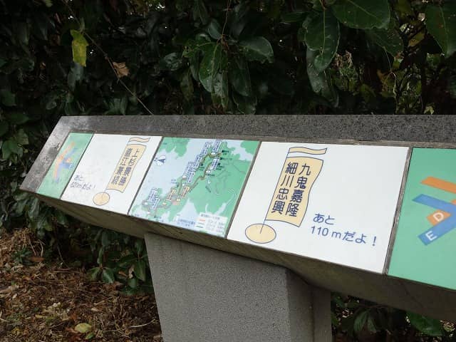食べ終わると、ガイドさんとともに家康の陣屋に行くことになった。名護屋港まで見晴らせる眺めのよい道を歩き、竜泉寺の脇を抜け、茂った木々の間を上っていく。そこには、あの徳川家康の陣跡があった。