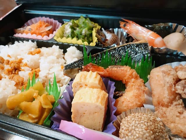 地元のお店がこの日のために作ってくれたお弁当。海の幸も山の幸もたっぷり詰まっていた