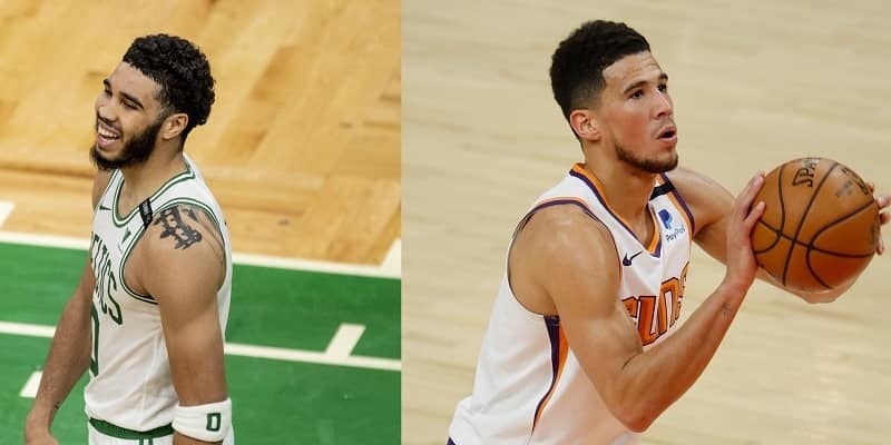 セルティックスのテイタム(左)とサンズのブッカー(右)[写真]=Getty Images