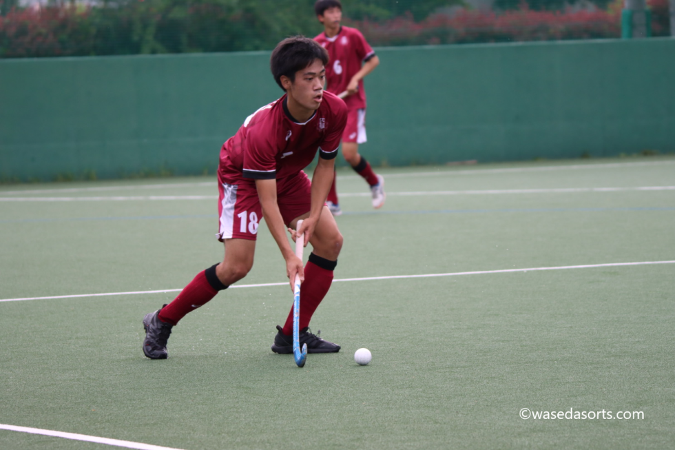 第1Q開始直後から、早大は主導権を握り、一橋大陣内に押し込む。約2分には、この試合1本目のシュートを放ちリズムに乗った。約5分にはPCを獲得するも、これは相手GKのファインセーブに阻まれる。その後も引いて守る相手に攻めあぐねる早大だったが、約8分再びPCを獲得し、これを豪快にFW小比類巻周(政経2=東京・早大学院)が決めて先制点を奪う。勢いづいた早大は、約11分にも、PCを獲得するが追加点を奪うことはできなかった。そして早大優勢のまま第1Qを終える。続く第2Qでも、早大はボールを握り、激しい攻撃を仕掛ける。約3分に、パスカットから繋いだボールを、FW平岩佑利(スポ3=奈良・天理)がシュートを放ち、欲しかった追加点を手に入れた。その後は、早大は、相手陣内に攻め込むものの、粘り強く守る一橋大に対して決定機を作れないでいたが、約10分にMF中島丞一郎(スポ2=富山・石動)がシュートを放ち、一橋大ゴールを脅かす。また相手のカウンターにも、早大は連動した守備で冷静に対処した。