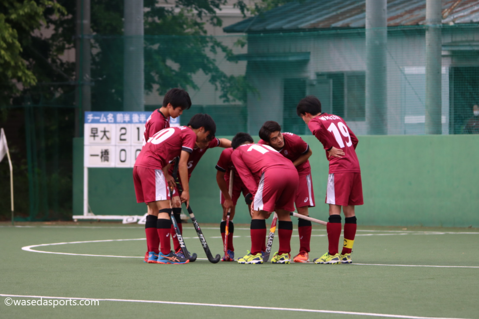 今日で、決勝リーグへ進出できるかどうかが決まる一橋大との大事な一戦。試合は終始早大ペースで進み、全4クオーター(Q)、計6得点を上げ一橋大を粉砕し、今期初勝利を収めた。しかし、他会場で行われた明大と法大の試合で、法大が1対2で明大に敗れた結果を受けて、早大は得失点差で法大に敗れ、決勝リーグ進出はならなかった。