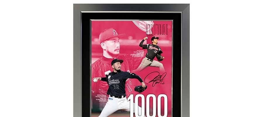 ロッテ石川の1000投球回記念「直筆サイン入りフォトパネル」【写真:球団提供】
