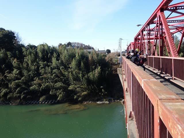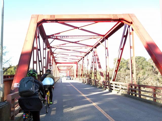 このエリアには利根川と鬼怒川が流れているのだが、双方の流れがYの字型になり、合流しているポイントがあるという。今まで、利根川と鬼怒川がひとつになっているなど、考えたこともなかった。さっそく、この合流ポイントを目指す。まずは鬼怒川を越える。赤い鉄橋が冬の景色に映えてより美しく見える。