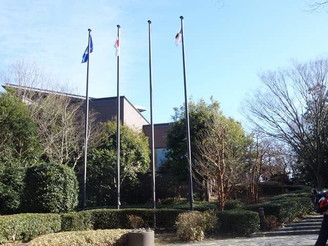 ここから再び市街地へ。美しい並木道に入り下っていくと博物館が見えてきた。ここは「ミュージアムパーク茨城県自然博物館」。地元の小学生の定番の遠足先とのこと。中には世界最大のマンモス、松花江マンモスや、同じく世界最大級の大型の植物食恐竜、ヌオエロサウルスの骨格標本が展示されているのだとか。宇宙や地球の生い立ちなどが展示解説されているそうで、大いに興味はあったが、かなり時間をかけてめぐる施設のようなので、今回は外観だけで断念することにした。子連れで訪れるには最適の施設だろう。