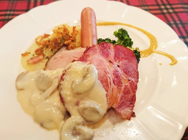 この日のスペシャル「カスラー」はキノコソース添え。筑波もち豚の肩ロースをハムに仕上げたもの