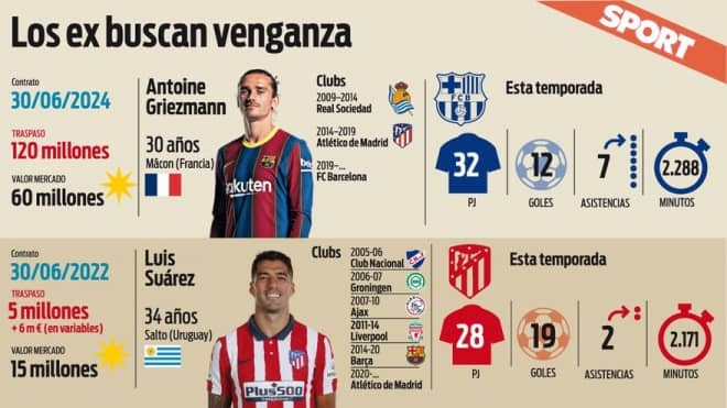 グリーズマンは、アトレティコと4回対戦している。最初の試合は、2019年12月1日にワンダ・メトロポリターノで行われたもので、激しい指笛が鳴り響いた試合のなかで勝利を収めた。2回目の対戦は、サウジアラビアで行われたスペイン・スーパーカップの準決勝。ゴールを決めたが敗れた。3度目は、パンデミックに陥っていた2020年8月末で、試合は引き分けだった。