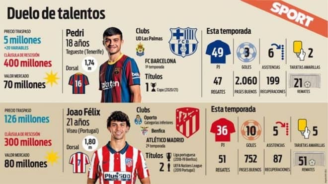 才能を管理する2つの異なる方法。時代に名を刻む2人の選手。しかし、それぞれが独自の方法でこの道を歩む。土曜日、彼らは再び出会う。ペドリは先発に名を刻むことが確実だ。直近の7試合で141分間プレーしているジョアンは、この試合で話題をさらう可能性を秘める。