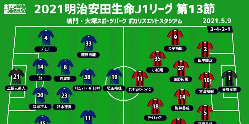 【明治安田生命J1リーグ第13節】 2021年5月9日(日) 15:00キックオフ 徳島ヴォルティス(14pt/12位)…