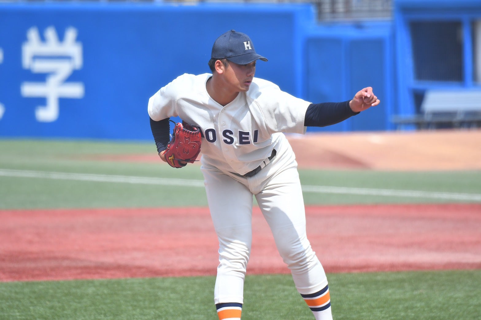 9日の明大戦に先発した法大・山下輝【写真:中戸川知世】