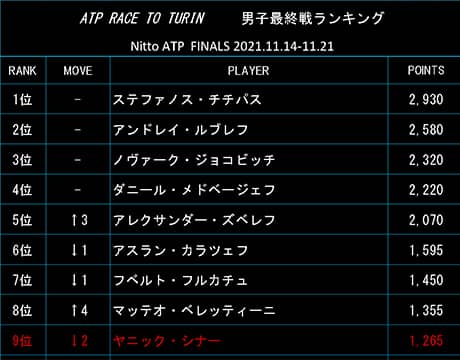 ズベレフ浮上 10日付最終戦ランク | テニス