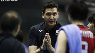 <女子日本代表コーチ時代のアクバシュ氏(写真は2018年ネーションズリーグのもの)> トルコリーグ女子のエジザジュバシュ…