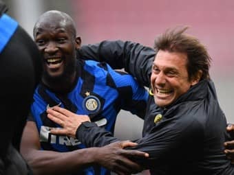インテル優勝を牽引したロメル・ルカクとアントニオ・コンテ監督 photo by Reuter/AFLO