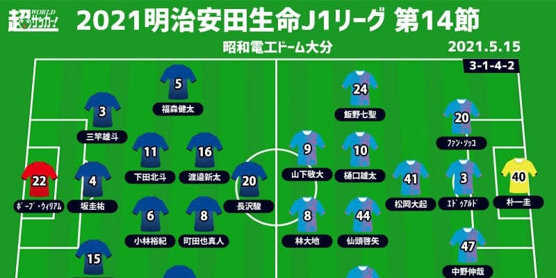 【明治安田生命J1リーグ第14節】 2021年5月15日(土) 16:00キックオフ 大分トリニータ(17位/8pt) …