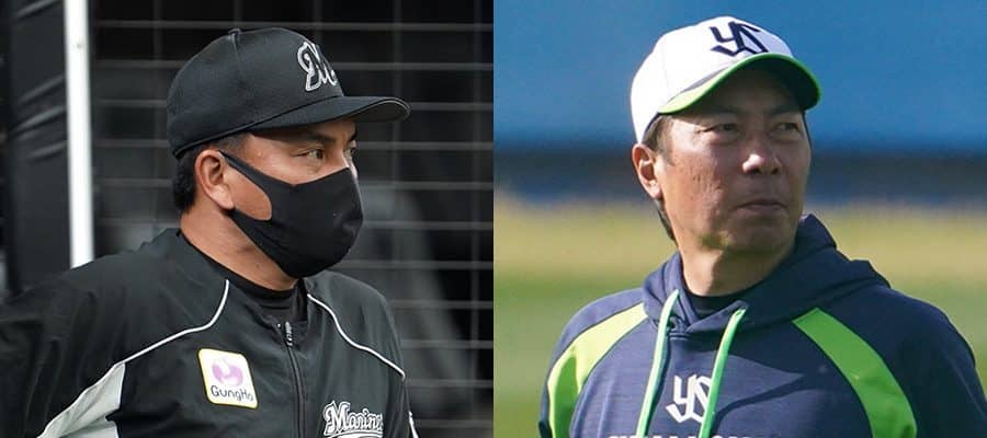 ロッテ・井口資仁監督(左)とヤクルト・高津臣吾監督【写真:荒川祐史】