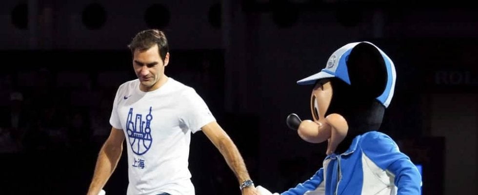 2017年のイベントでミッキーマウスと共演したフェデラー