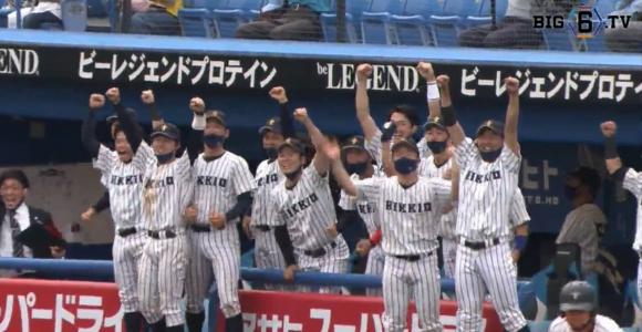 優勝の可能性が残っている両大学にとって絶対に負けられない一戦。立大は池田陽(②智辯和歌山)、明大は竹田(④履正社)が先発。
