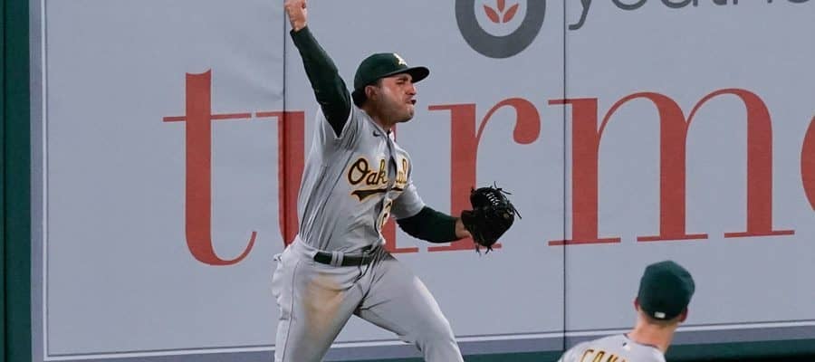 ラウレアーノはエンゼルスのレンドンが放った大飛球を好捕■アスレチックス 8ー4 エンゼルス(日本時間22日・アナハイム)…