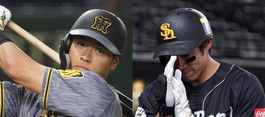 阪神・佐藤輝明(左)とソフトバンク・柳田悠岐【写真:荒川祐史】